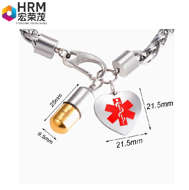 Model No.: HRM-CB-4 Material: Stainless Steel Capsule Size: 25*9.5mm Chain Length: 21cm