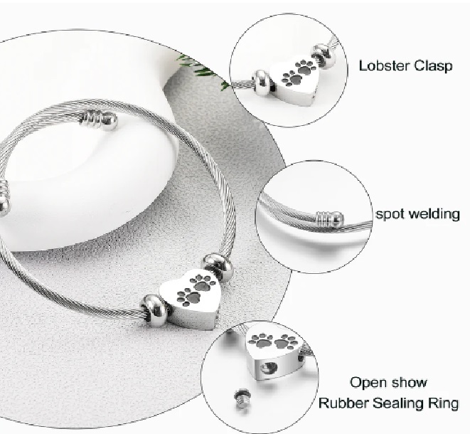 Urns bracelet with paw pattern for ashese
